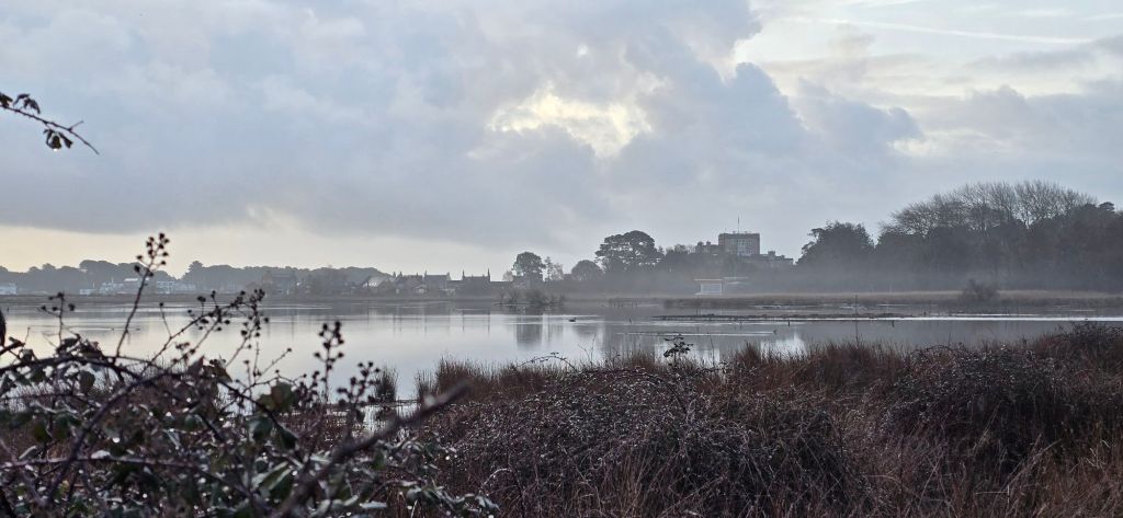 I didn’t stay in. I pulled on a waterproof coat and trousers, tucked my hair into a wooly hat, and out I went. The wind was pushing the water on the lagoon up into waves, the birds huddled together. I don’t think I took in much of this at first, as now I am trying to write it I can’t recall it clearly. I walked Middle Street, thinking how only the day before I was not walking this track alone. Trying not to think that too much.